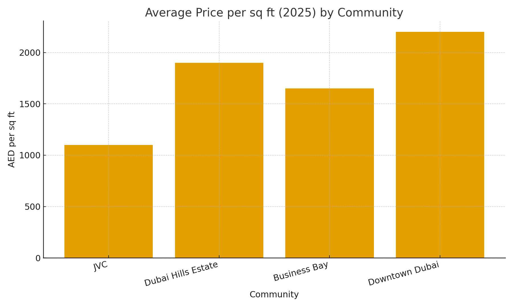 - Average price per sq ft: around AED 1,050 – 1,150