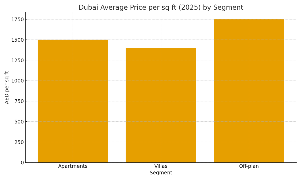 | Apartments | AED 1,400 – 1,600 | +8 % | Sustained demand from investors |